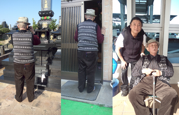 大阪市内のご自宅にスタッフの車でお迎えにあがり、ご主任のお墓参りに京都へ。